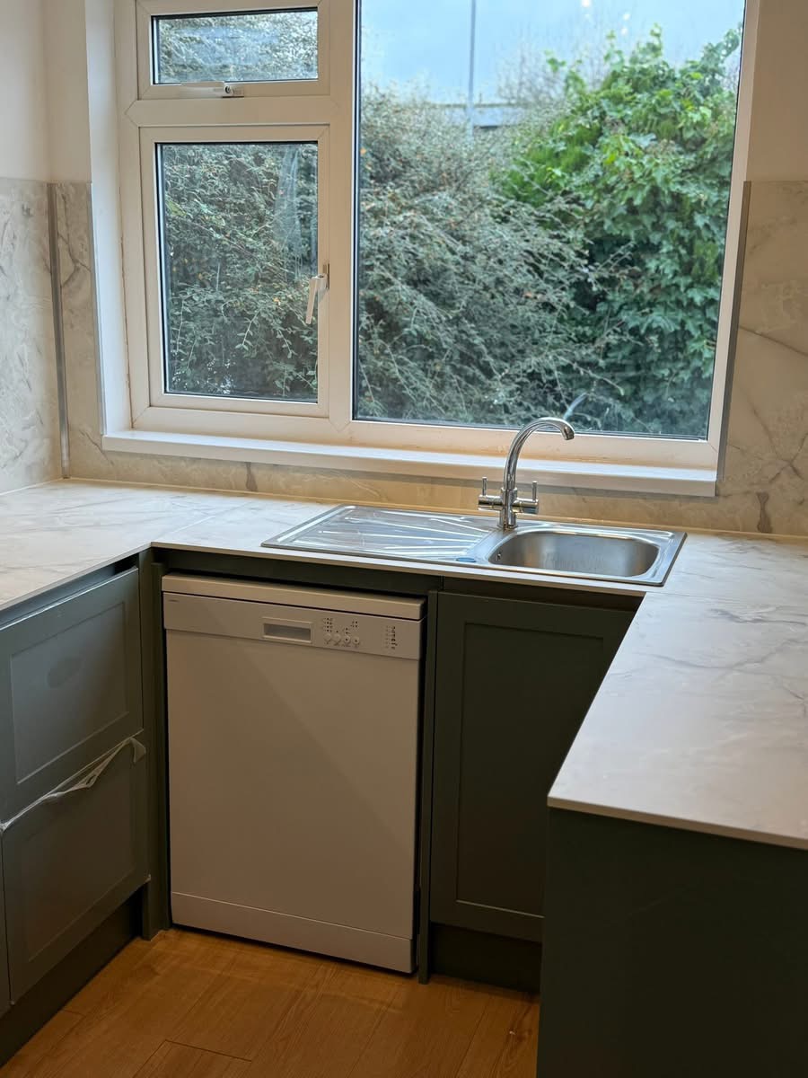 - Brand-new kitchen units, worktops, and appliances supplied by Wickes